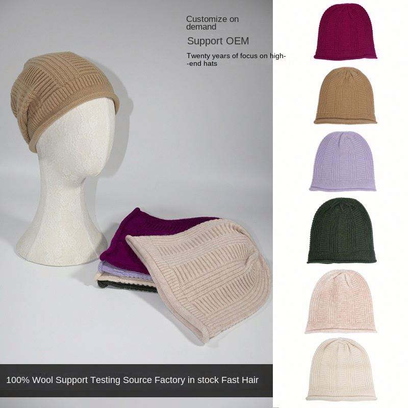 Bonnet d'hiver en laine pure tricotée pour femme, protection des oreilles, couleur unie, grande taille, pour l'extérieur