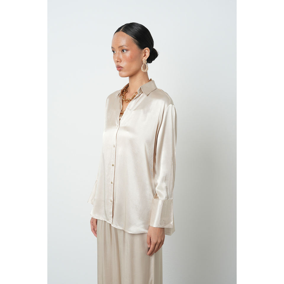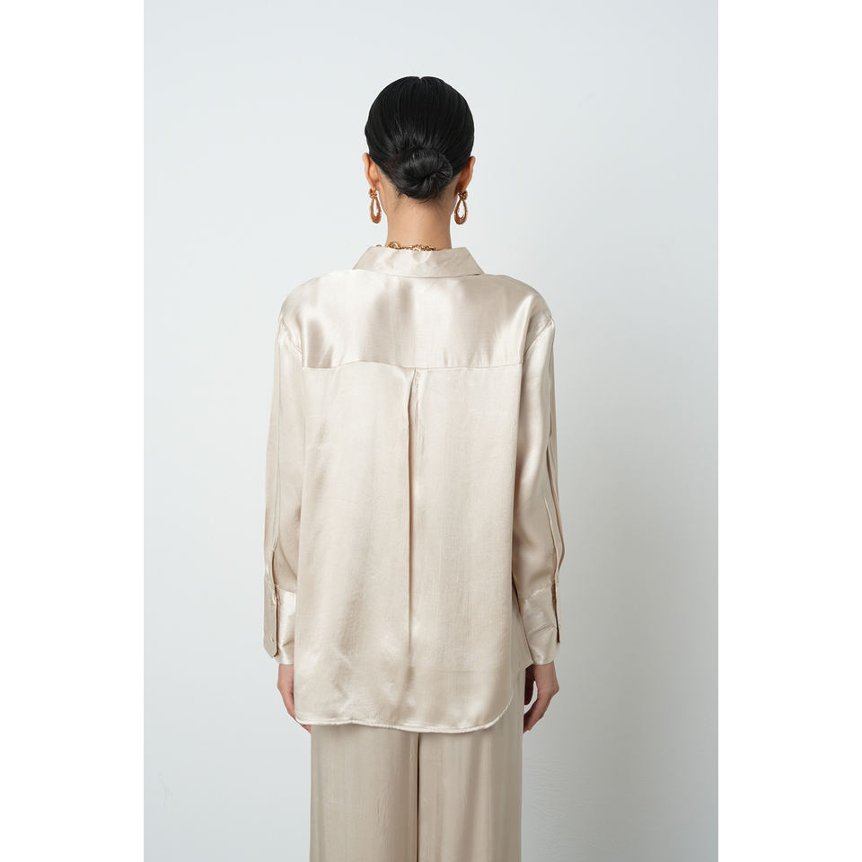 Women's 100% Viscose V-Neck Light Beige Shirt with Gold Buttons Designer Collection