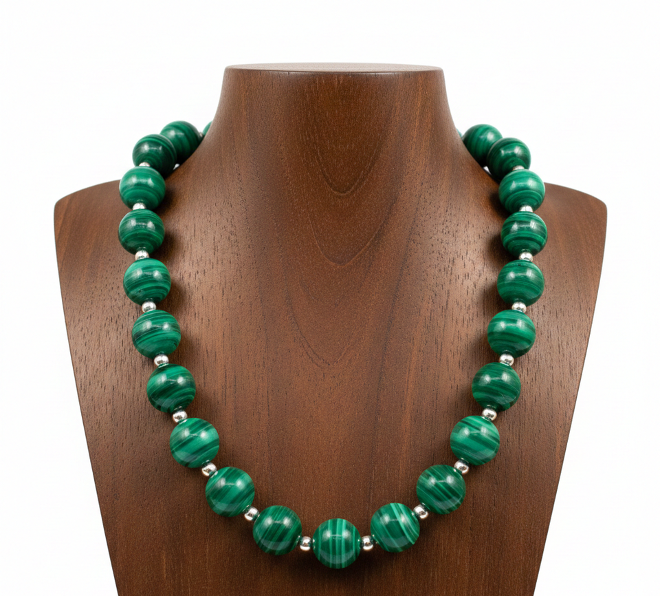 Women's 14K Gold Tibetan Silver 18-Inch Hand Knotted Beaded Necklace Labradorite Natural Malachite Stone Geometric Fashion