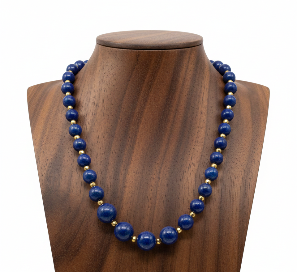 Collier pour femme en perles tibétaines nouées à la main de 18 pouces, tendance, plaqué or, géométrique, pierre naturelle lapis-lazuli, cadeau