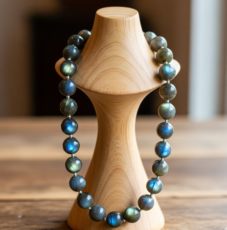 Femmes 18 pouces argent 925 serrure collier noué à la main Labradorite pierre perlée Design géométrique guérison naturelle mode à la mode