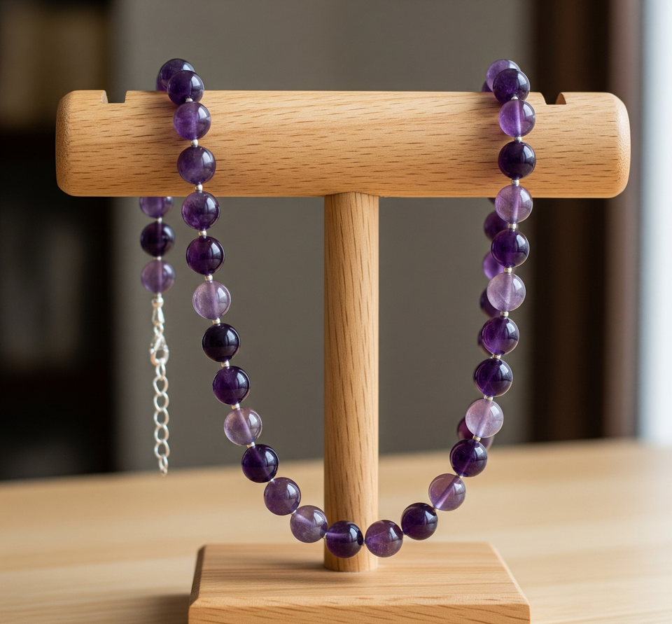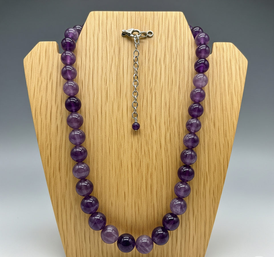 Femmes 18 pouces argent 925 serrure collier noué à la main améthyste pierre perlée Design géométrique guérison naturelle mode à la mode
