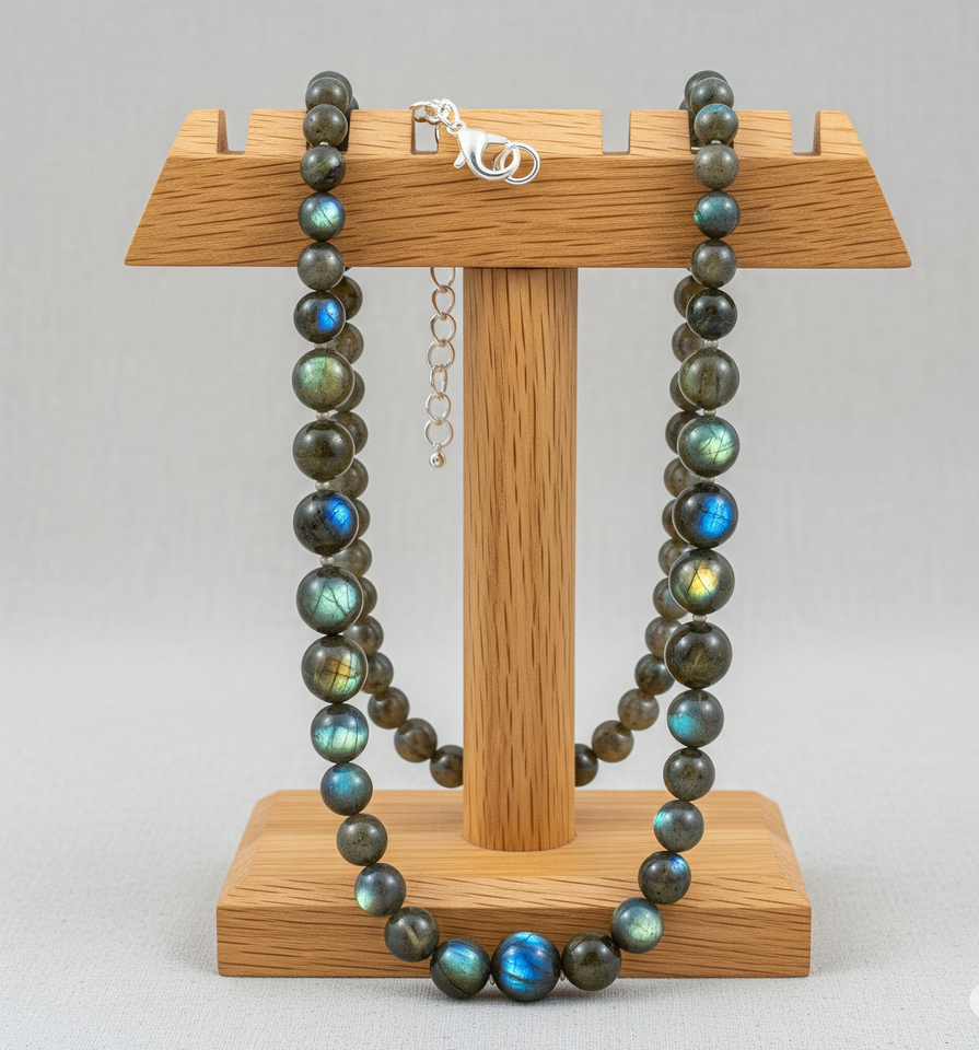 Collier femme 18 pouces en argent 925 guérison pierre de labradorite naturelle perlée d'eau douce nouée à la main Design mode à la mode