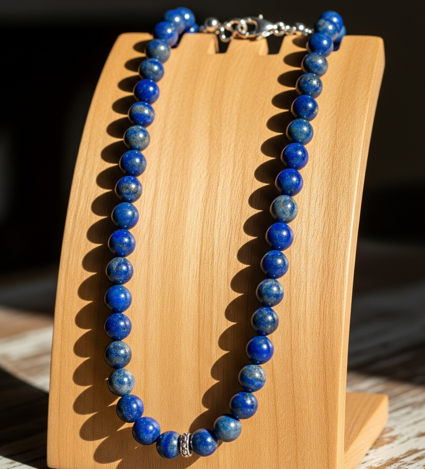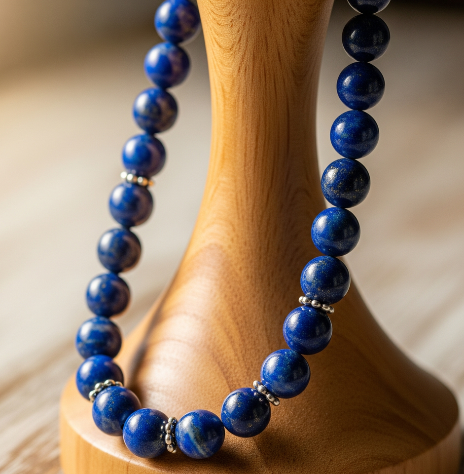 Collier Femme 18 Pouces Argent 925 Lapis Lazuli Pierre Perles Noué Design Géométrique Or 24K Guérison Naturelle Mode À La Mode