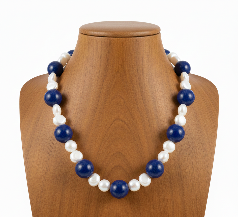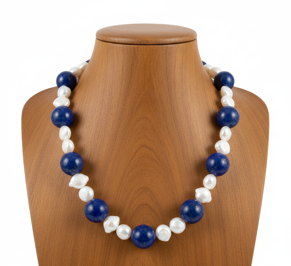 Collier pour femme en argent 925 plaqué or de 18 pouces avec perles de lapis-lazuli naturel de haute qualité, fait à la main, géométrique, tendance, cadeau