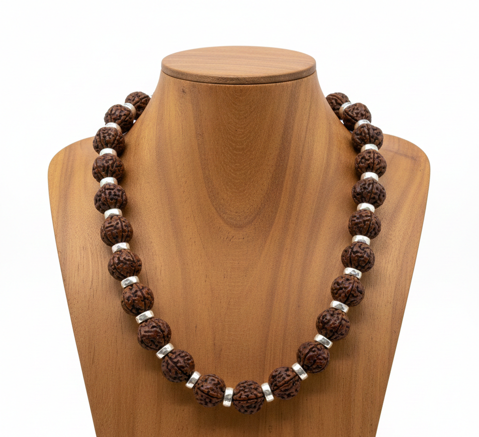 Collier pour femme en argent 925 plaqué rhodium de 18 pouces avec labradorite géométrique perlée, noué à la main, pierre naturelle Rudraksha, tiers