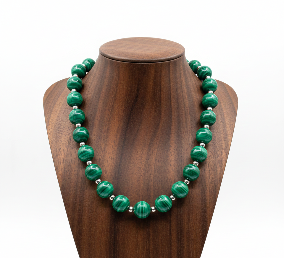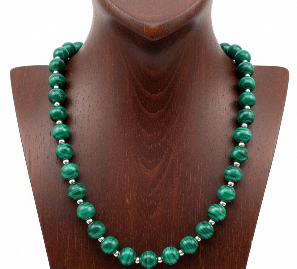 Women's 18-Inch Tibetan Silver Labradorite Malachite Beaded Necklace Hand-Knotted Geometric Design Trendy Beaded Bracelet