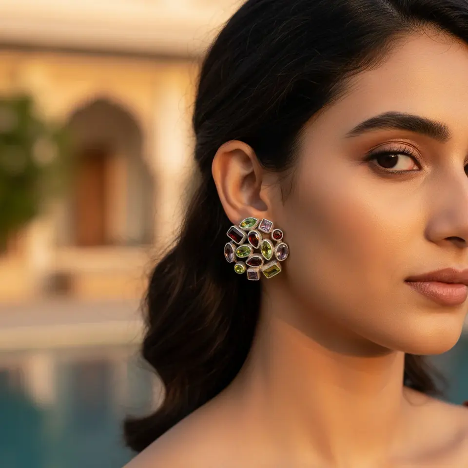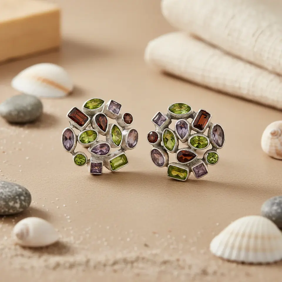 Women's 18K Gold Plated Gemstone Stud Earrings Silver with Peridot Amethyst Garnet and Diamond for Engagement Gold Pearl