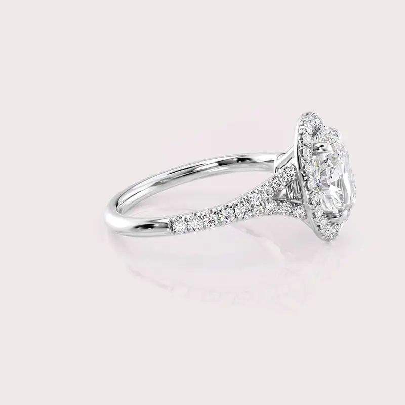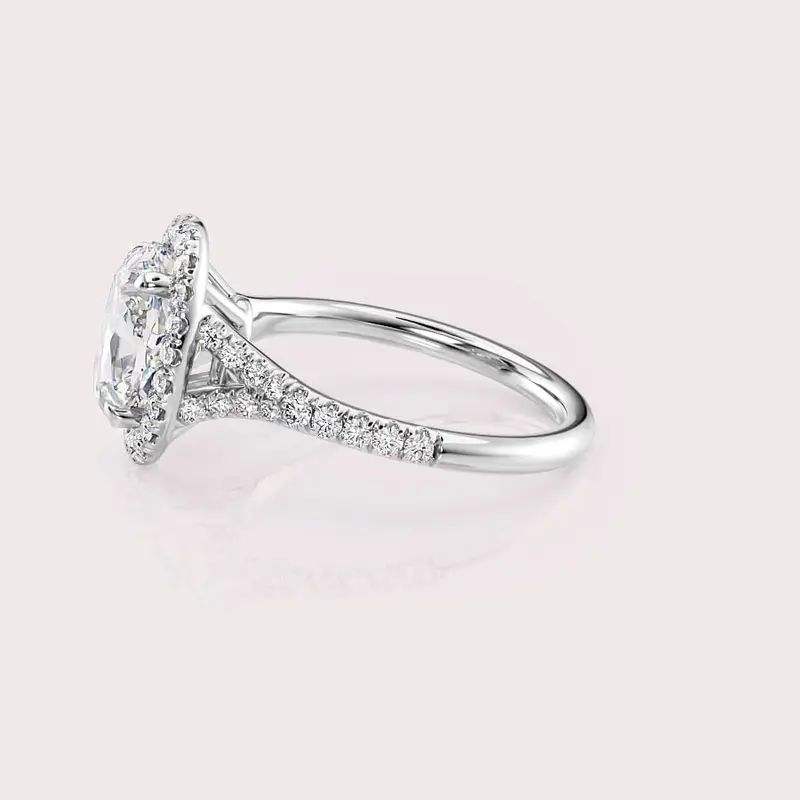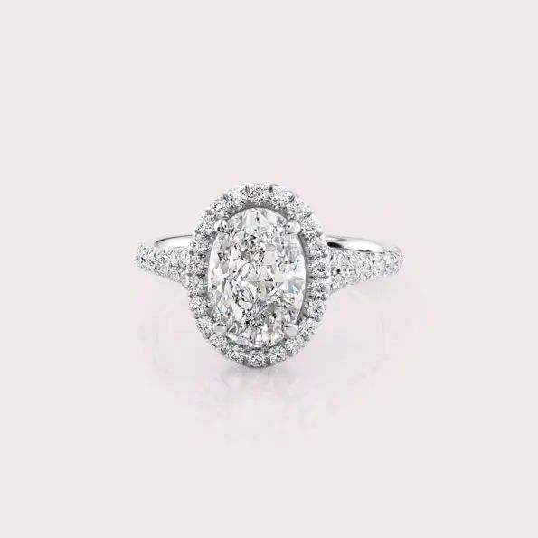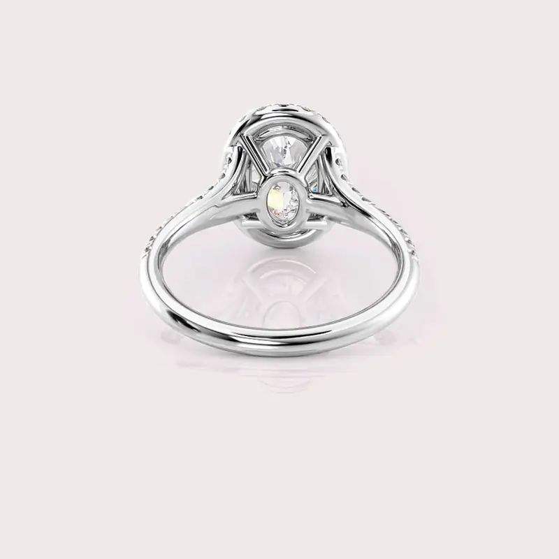 Bague pour femme en or blanc 18 carats plaqué rhodium, certifiée IGI, diamant ovale créé en laboratoire, monture halo, collection de bagues élégantes en diamant