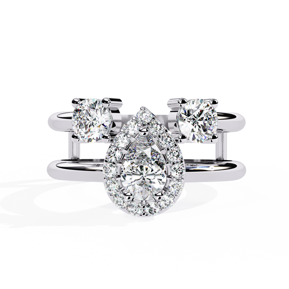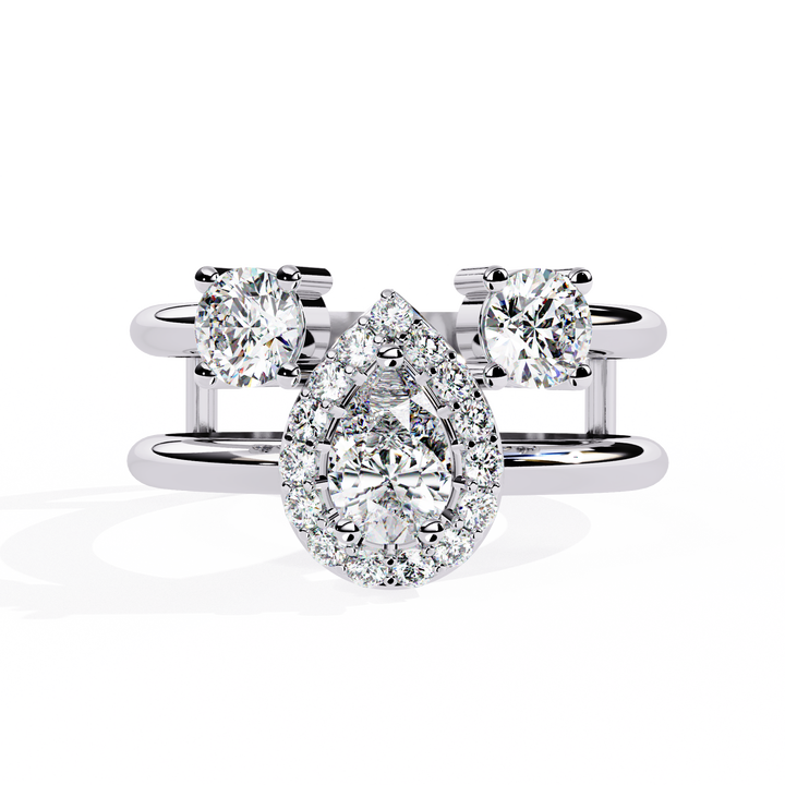 Bague de mariage pour femme en or blanc 14 carats avec halo de diamants de laboratoire de 2,5 carats, taille poire et taille halo, certifiée IGI, clarté VS, couleur F, double bande