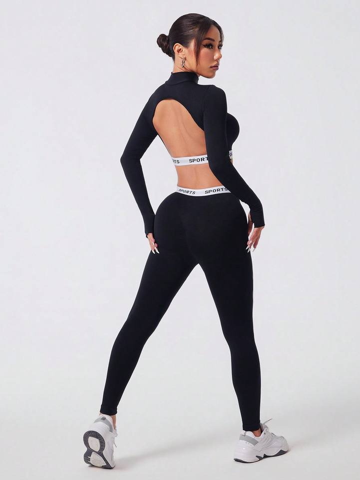 Tenues d'entraînement de yoga à dos creux 2 pièces pour femmes ensemble de yoga à manches longues ensemble de salon décontracté ensemble de sport de fitness