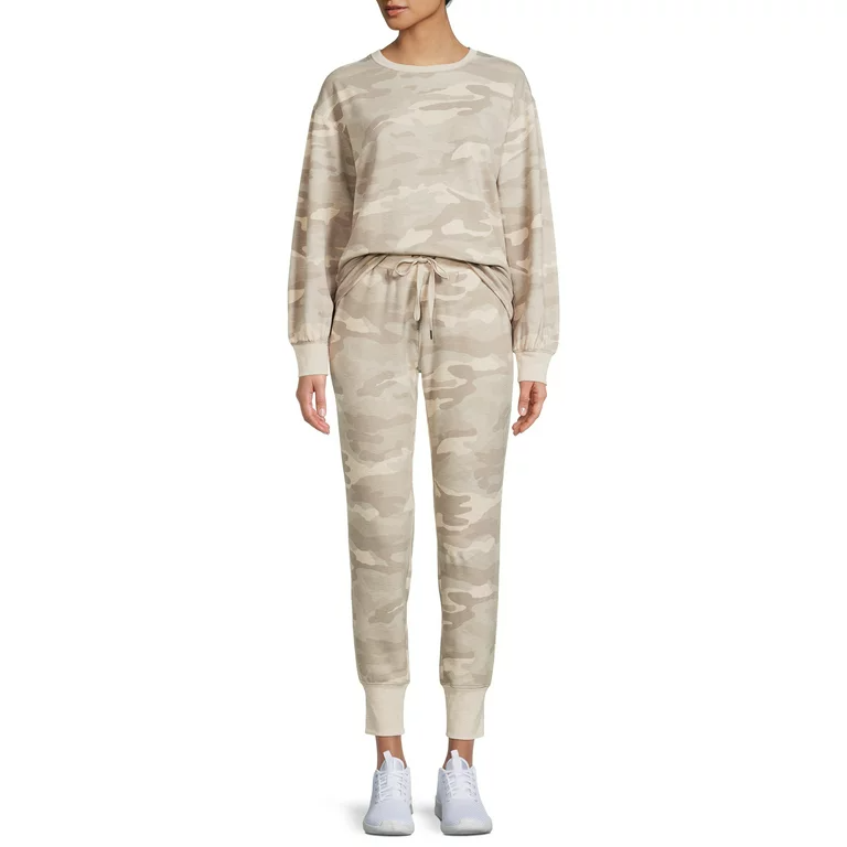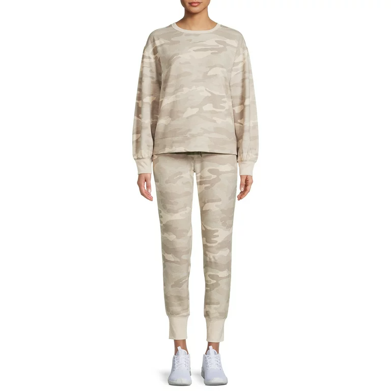 Ensemble 2 pièces pour femmes sweat-shirt en jersey brossé solide et pantalon de jogging à manches longues au-dessus du genou survêtements respirant pour l'hiver