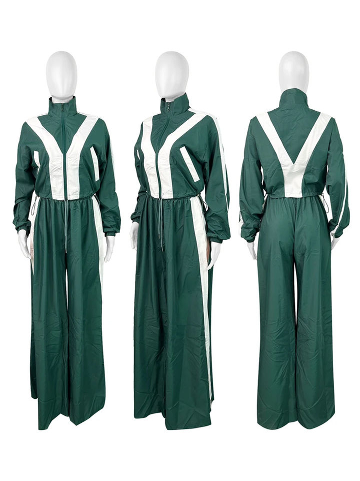 Ensemble 2 pièces pour femmes, veste zippée, pantalon taille haute à cordon de serrage, pantalon à jambes larges, ensemble de survêtement décontracté et ample