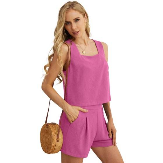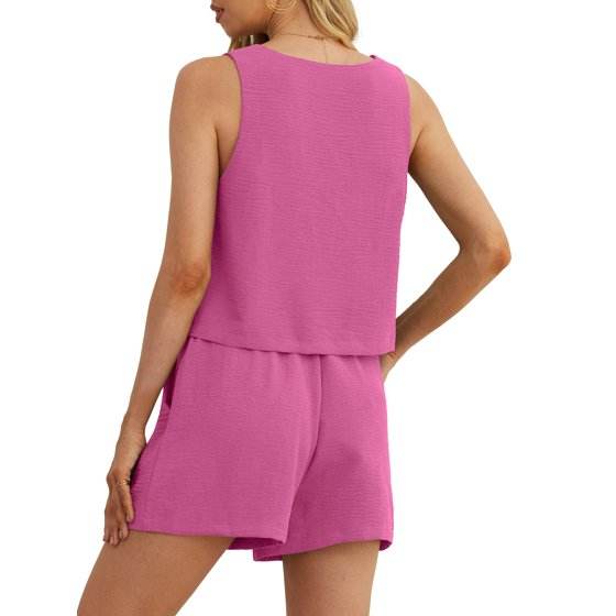 Short sans manches à col carré 2 pièces pour femmes ensemble décontracté haut d'été pour femmes noir S