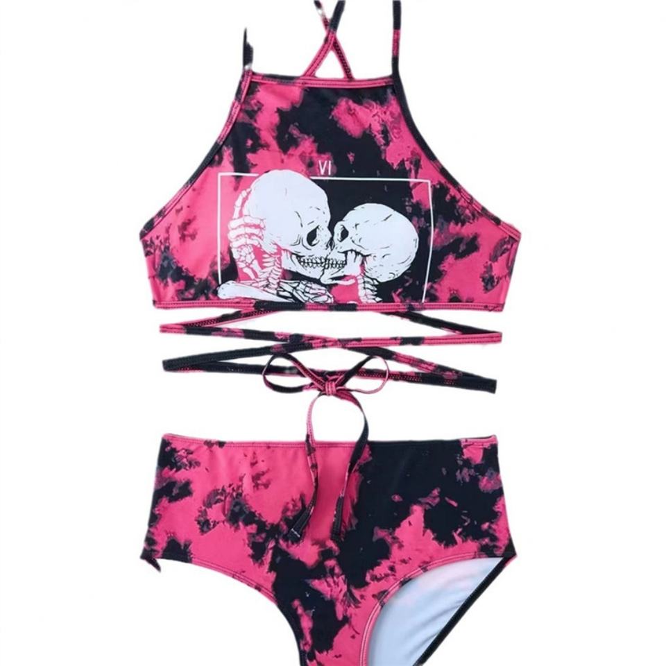 Ensemble bikini triangle 2 pièces pour femme, maillot de bain dos nu 3D personnalisé, string à nouer, licou à lacets, décorations en cristal, motif animal