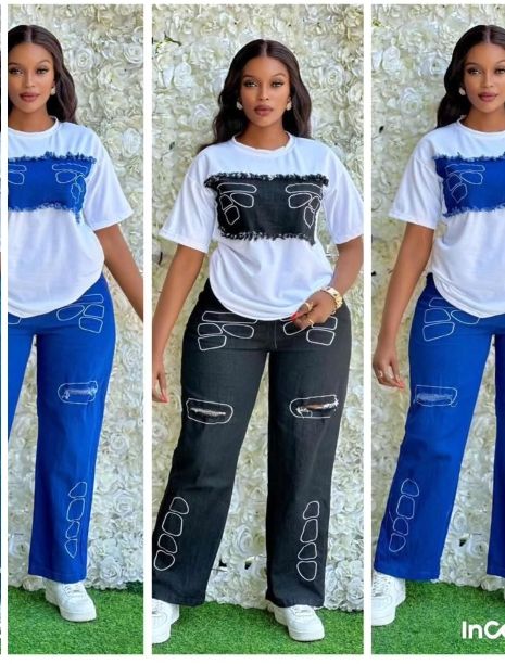 Ensemble pantalon en jean pour femme, collection 2025, modèle phare, avec technique de cirage, très tendance en Europe et aux États-Unis