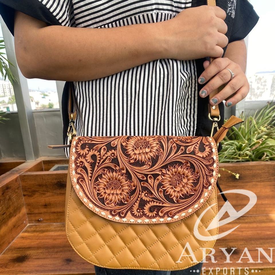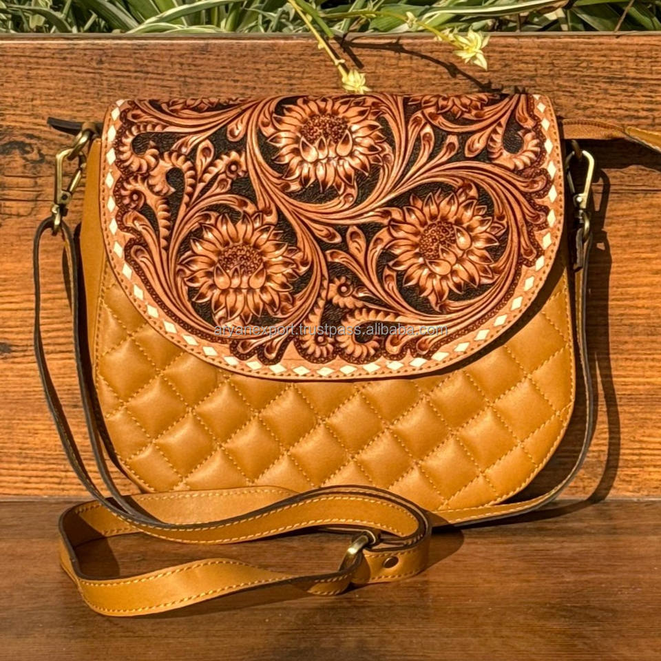 Product Name:Hand Tooled Diamond Lattice Quilted Crossbody Bag