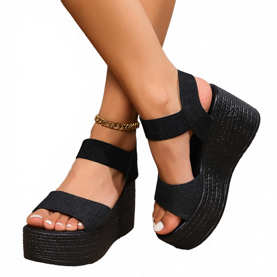 Women's 2025 New Large Size Summer Cross-Strap Rhinestone Decorated Slippers Casual PU Upper Rubber Midsole Toe Platform Wedge