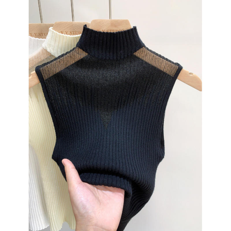 Gilet décontracté sans manches en maille tricotée pour femme, col rond, coupe-vent, ajouré, sexy, collection Printemps-Automne 2025