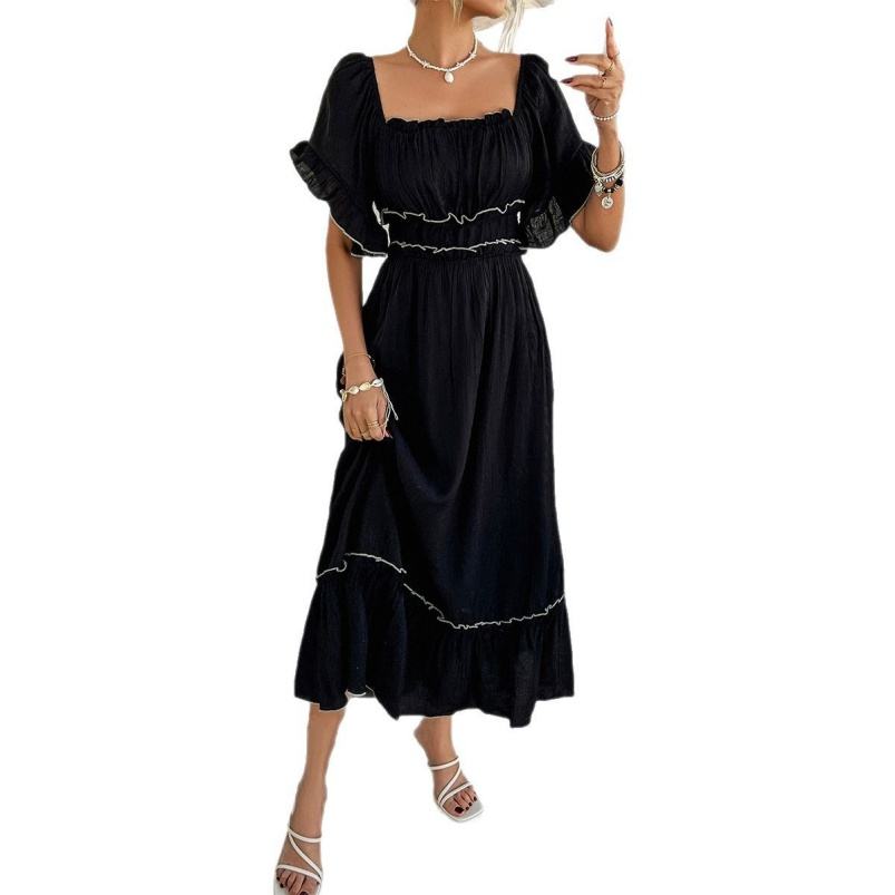 Robe longue décontractée bohème pour femme, collection Printemps-Été 2025, style européen et américain, unie, coupe naturelle, idéale pour les vacances et les soirées.