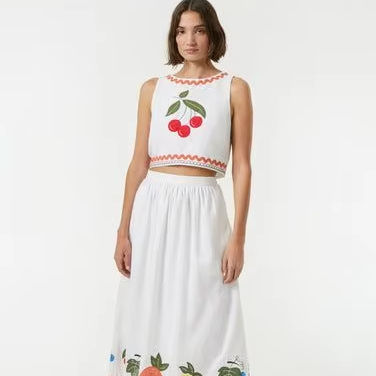 Women's 2025 Two-Piece Casual Solid Short Embroidered Sleeveless Vest Top + Retro Wide-Leg Pants Suit
