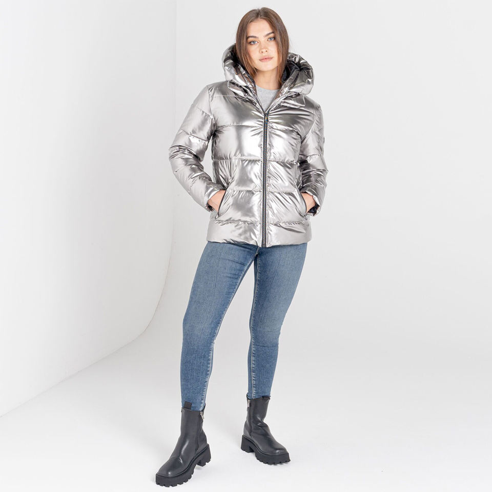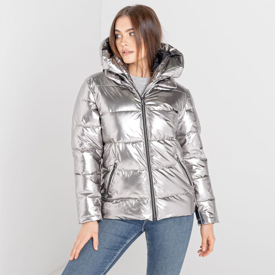Femmes 2025 hiver recyclé rembourré veste décontracté brillant gonflé Fitness manteau fermeture éclair grande taille pour l'extérieur porte OEM disponible