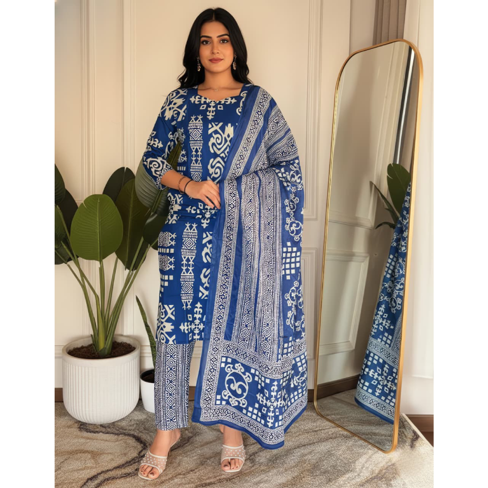 Ensemble de 3 pièces Laxmi Lifestyle pour femmes, vêtements traditionnels indiens en coton lavable, vêtements de fête, qualité d'exportation, approvisionnement en gros