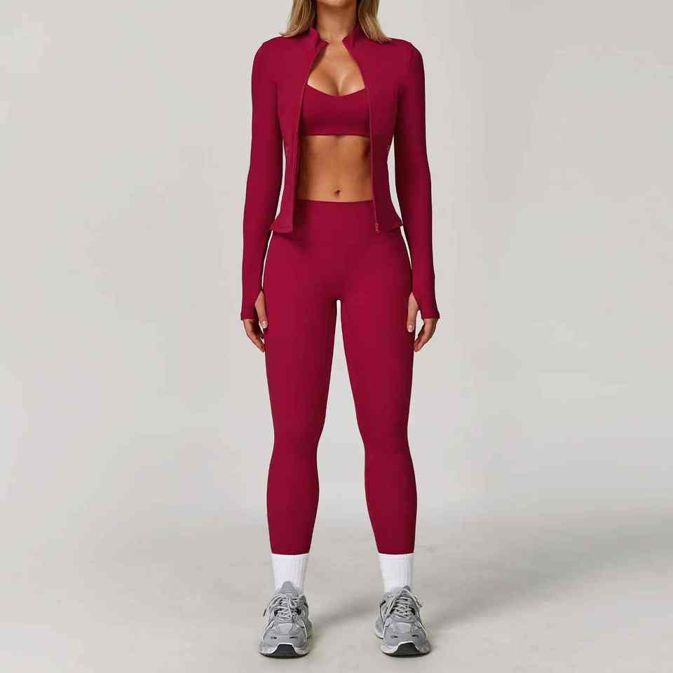 Women's 3-Piece Short Yoga Set Quick Dry Stretch Workout Outfit for Fitness Gym Running High Waist Leggings Sports Bra Coat 100%