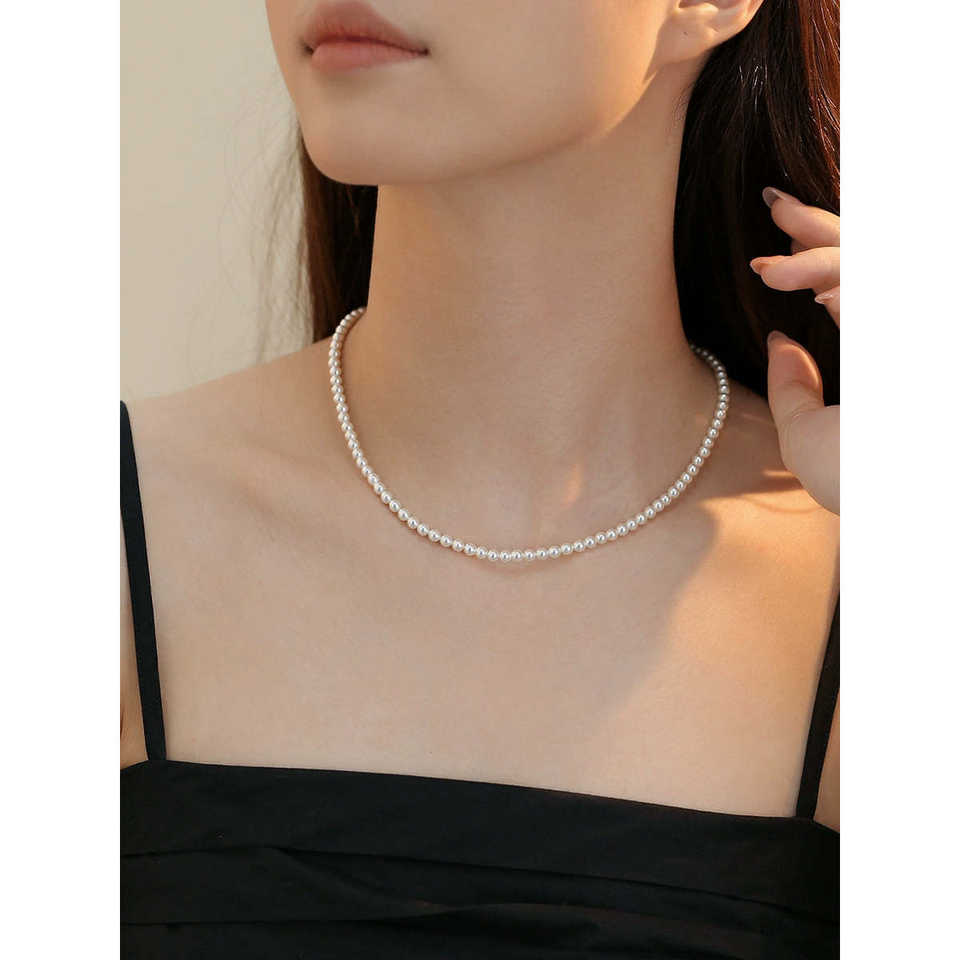 Women's 4mm Ultra-Fine Baby Small Rice Pearl Necklace Exquisite Design with Sense of Stacking