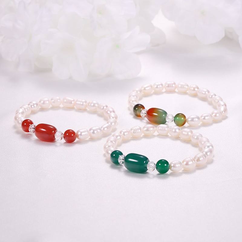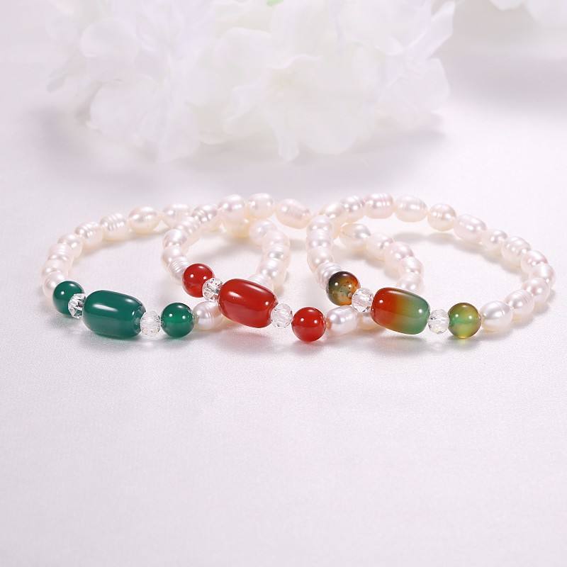 Bracelet en perles de riz baroques d'eau douce de 7 mm pour femmes, source de bijoux en gros, bracelet, bracelet, bracelet