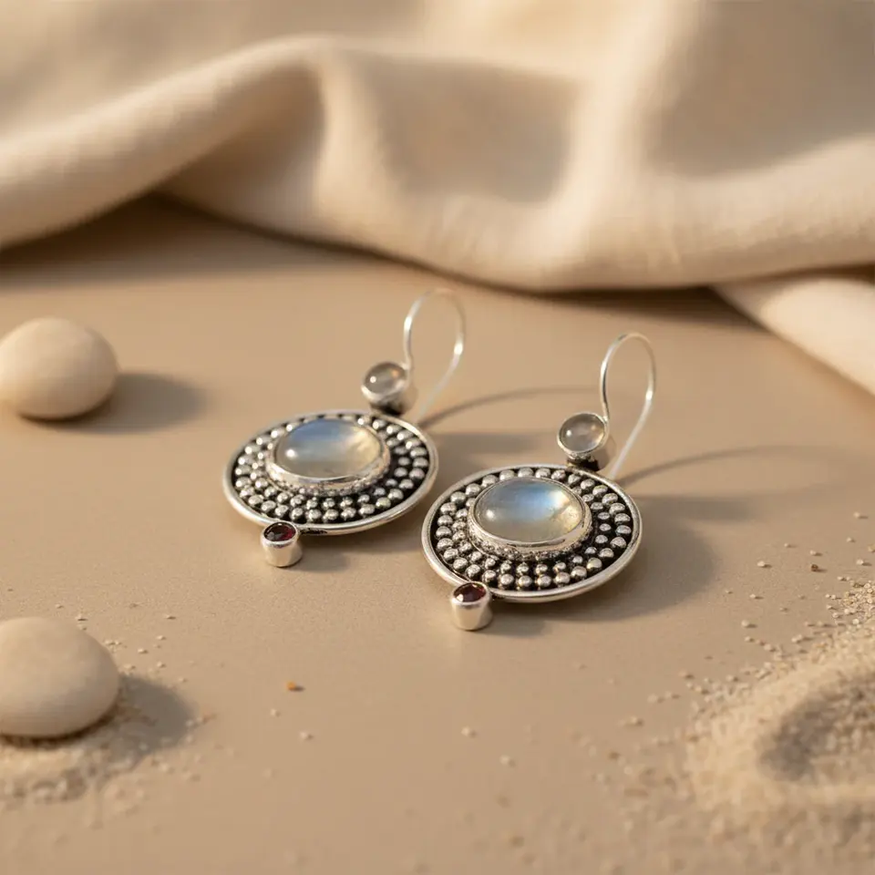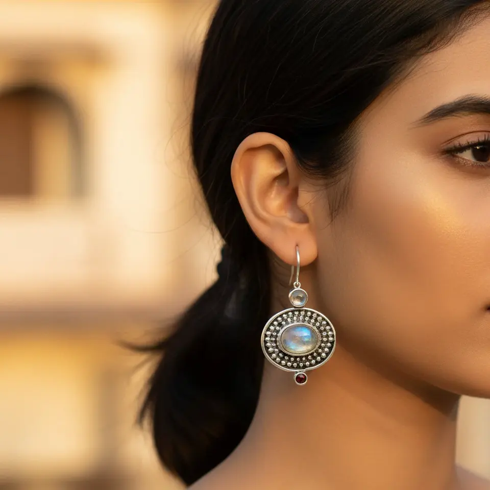 925 Sterling Silver,Moonstone,GarnetMaterial