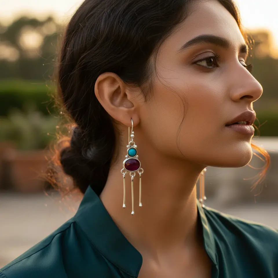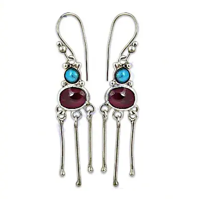 Boucles d'oreilles pendantes en argent 925 pour femmes, turquoise et rubis, bijoux fantaisie, cadeau