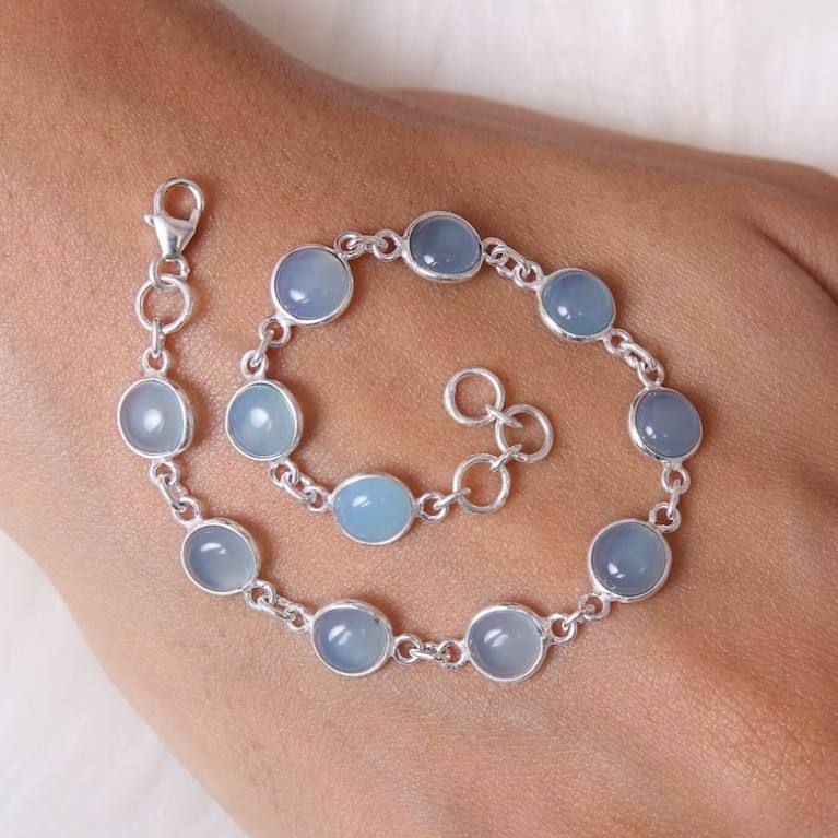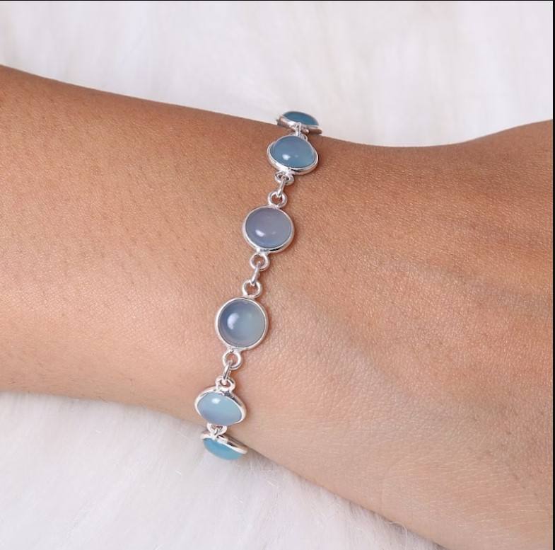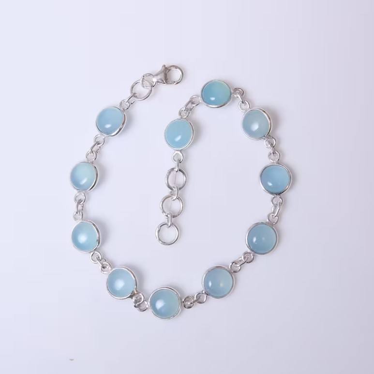 Product Name:Natural Aqua Onyx Gemstone silver bracelet