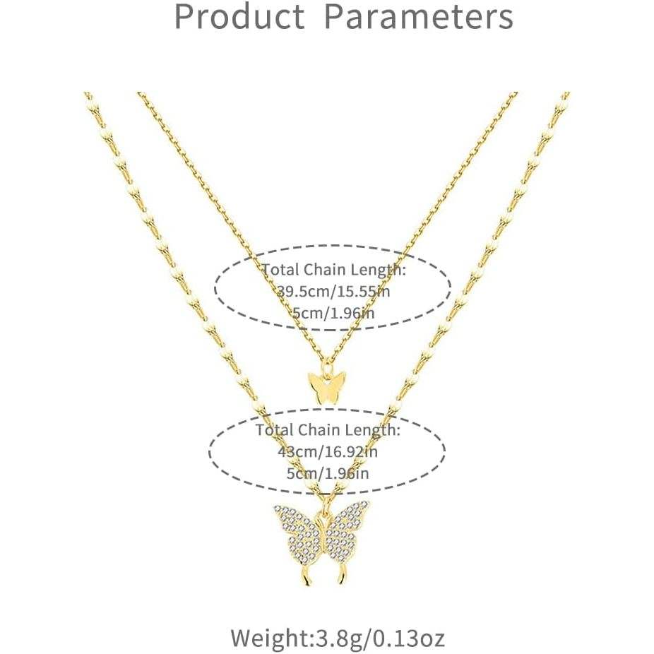 Women's Adjustable CZ Animal Chain Choker Cute Dainty Layering Pendant Necklace Crystal Butterfly Layered Necklaces Chic Jewelry