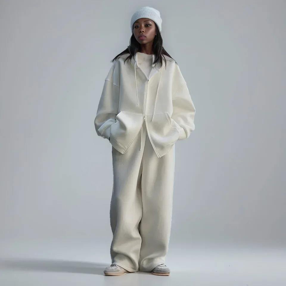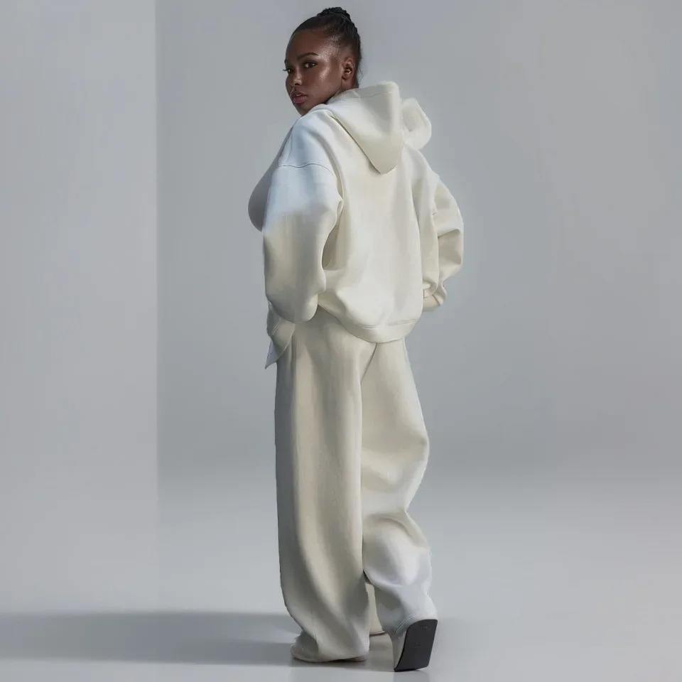 Ensemble de survêtement tricoté deux pièces brodé d'automne pour femme avec pull et pantalon large respirant 100% coton