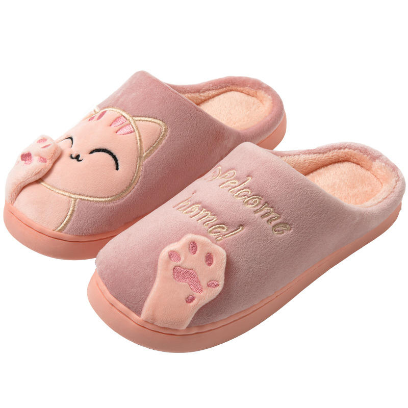 Fur, WARM SLIPPERS, Cartoon lucky catStyle