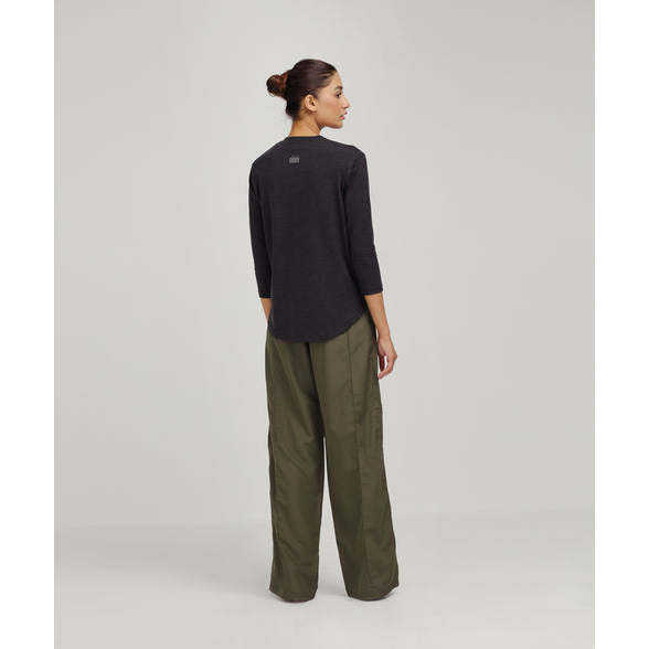 Elasticized waistband,slant pockets,cut and sew panels,flared hemProduct Features
