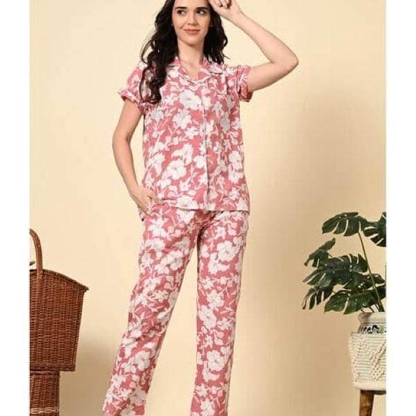 Women's Bamboo Clothing Lake Blue Night Dress with Neck Long Pajama Skirt Short Sleeve Pajamas for Home Use