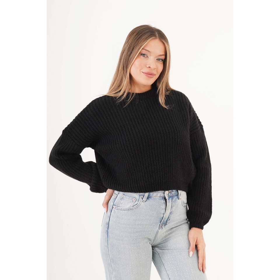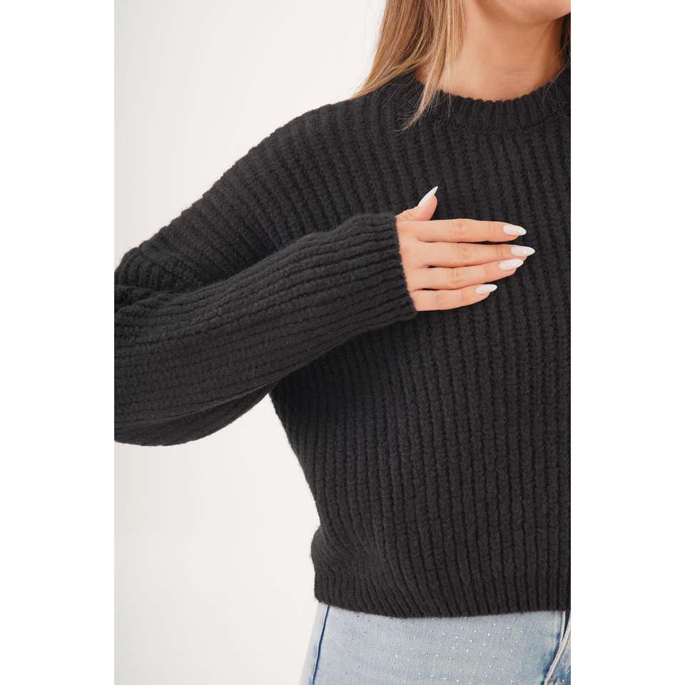 Pull basique à col rond pour femme en gros, couleur noire