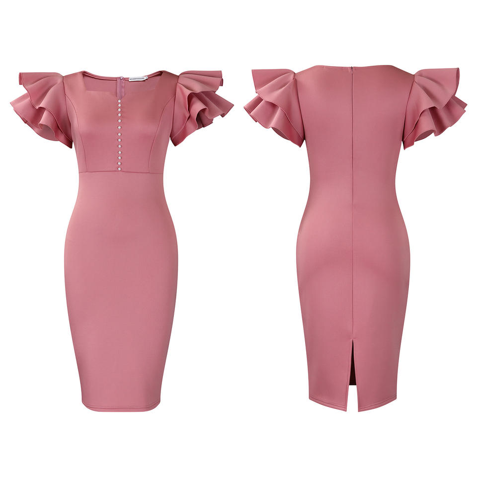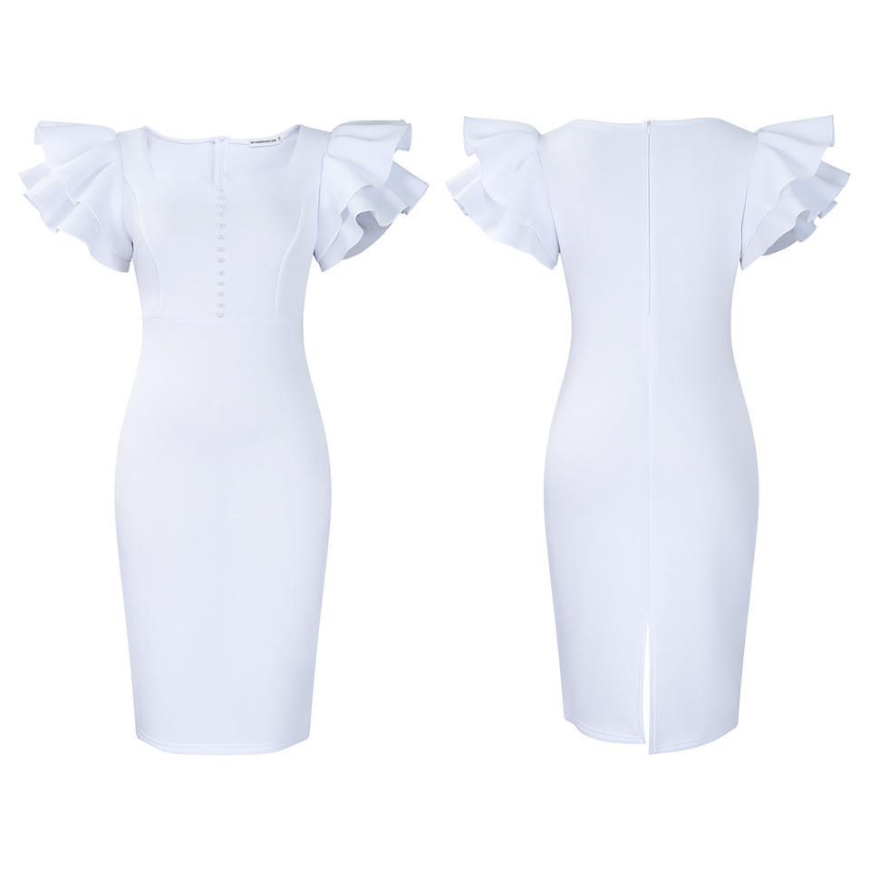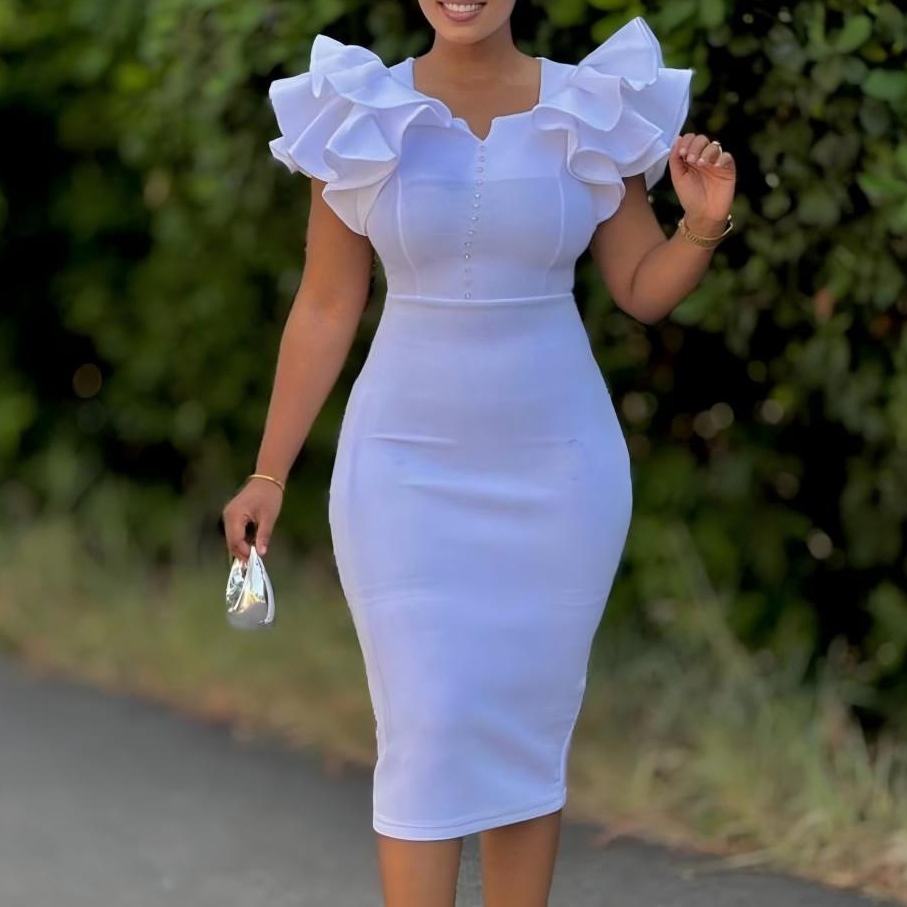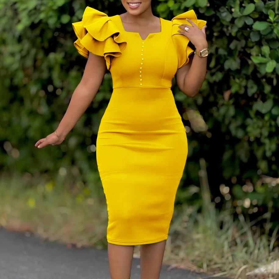 Robe africaine pour femmes à manches à volants perlées et à encolure drapée, mode