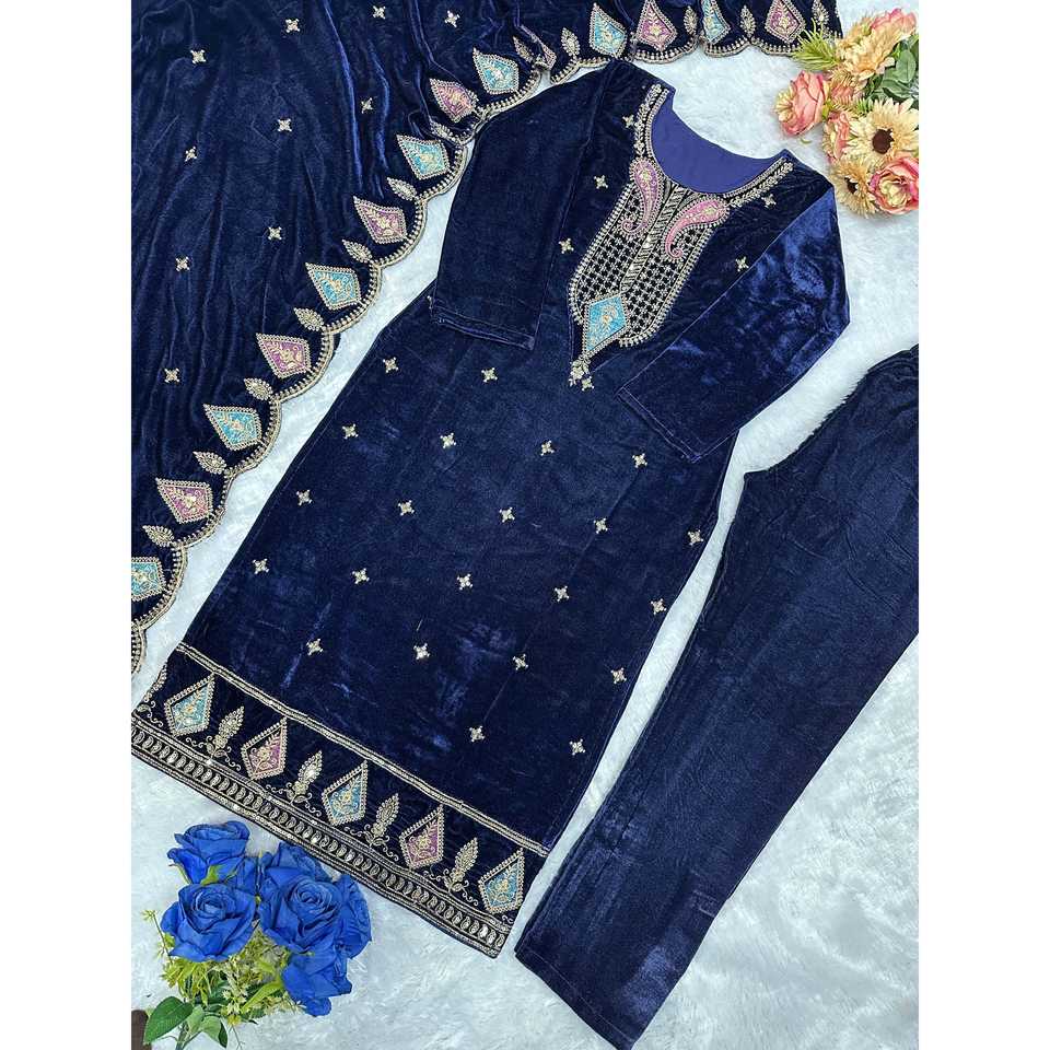 Ensemble haut, bas et dupatta brodé pour femmes, idéal pour les fêtes