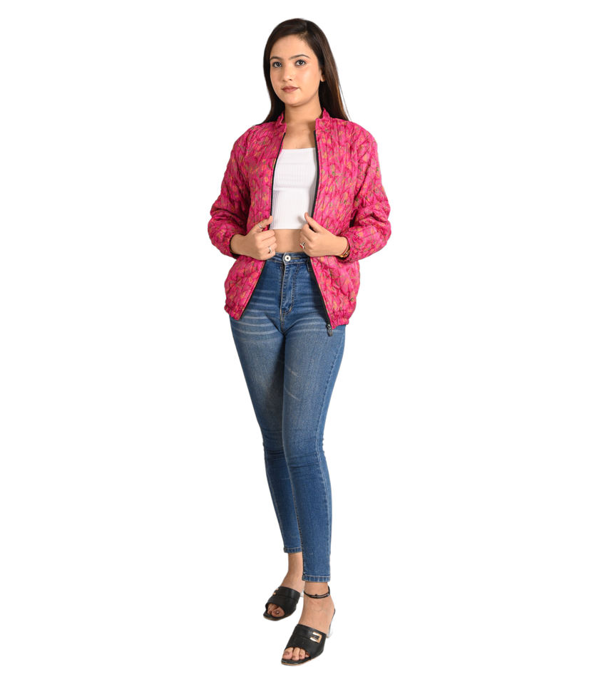 Femmes belle main bloc imprimé coton matelassé veste imprimé fleuri décolleté poches hiver court manteau tissé tissage