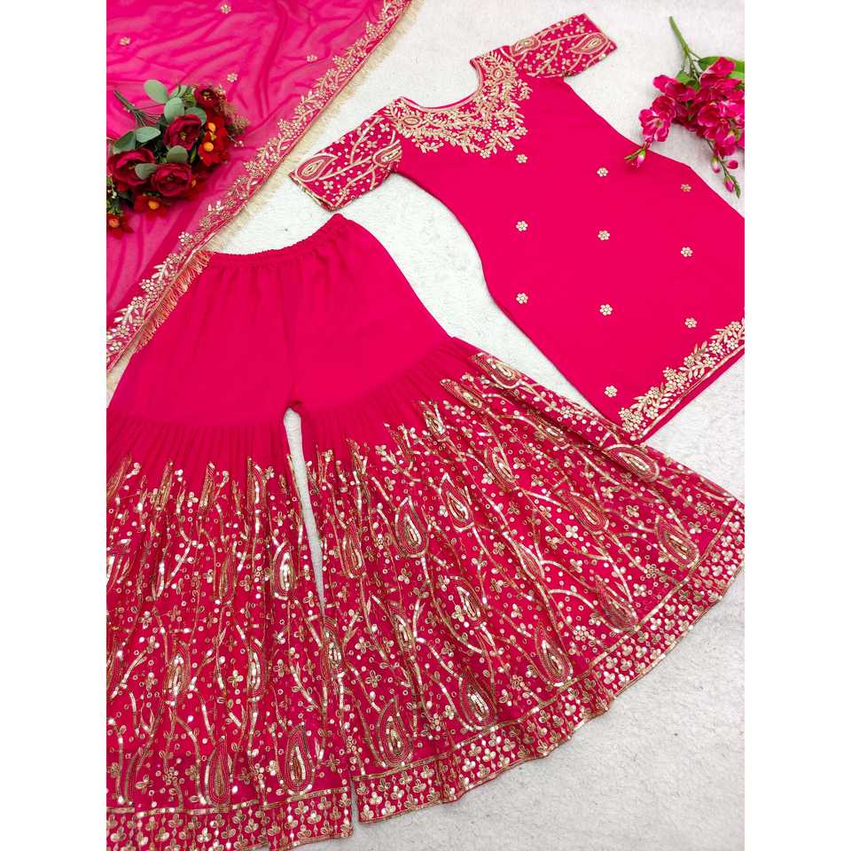 Women's Beautiful Party Wear Top-Sarara with Fancy Dupatta Set