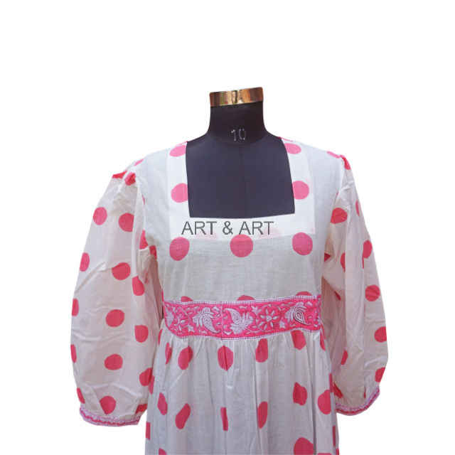 Belle robe mi-longue en pur coton pour femmes bloc de main indien imprimé fleuri confortable et léger humide robe de soirée décontractée