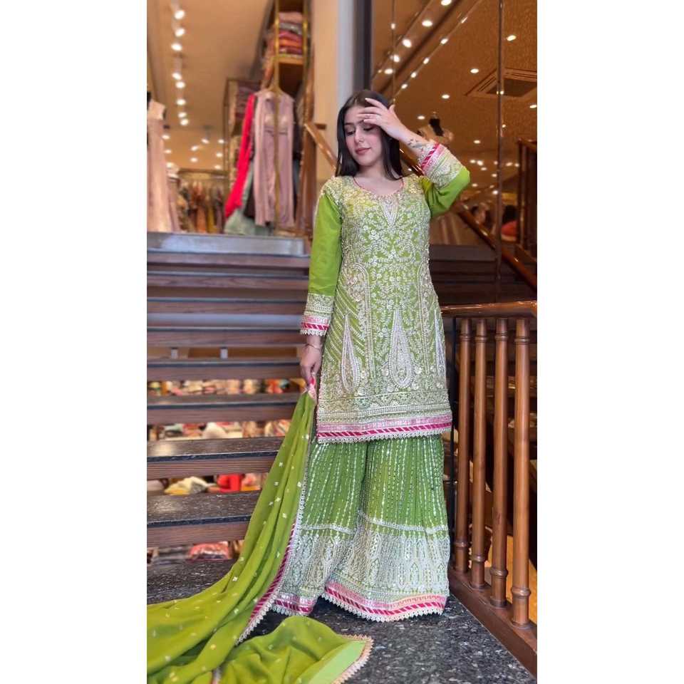 Women's Beautiful Sharara Top and Dupatta Set with Intricate Embroidery Sequence Work