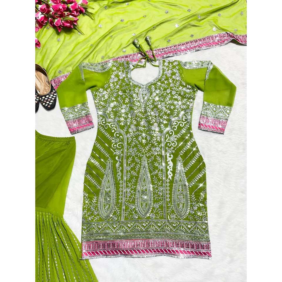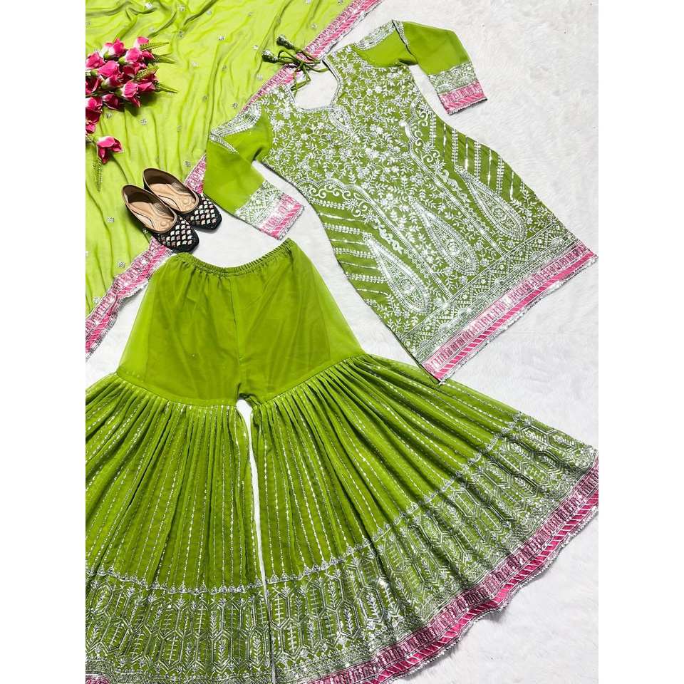 Women's Beautiful Sharara Top and Dupatta Set with Intricate Embroidery Sequence Work
