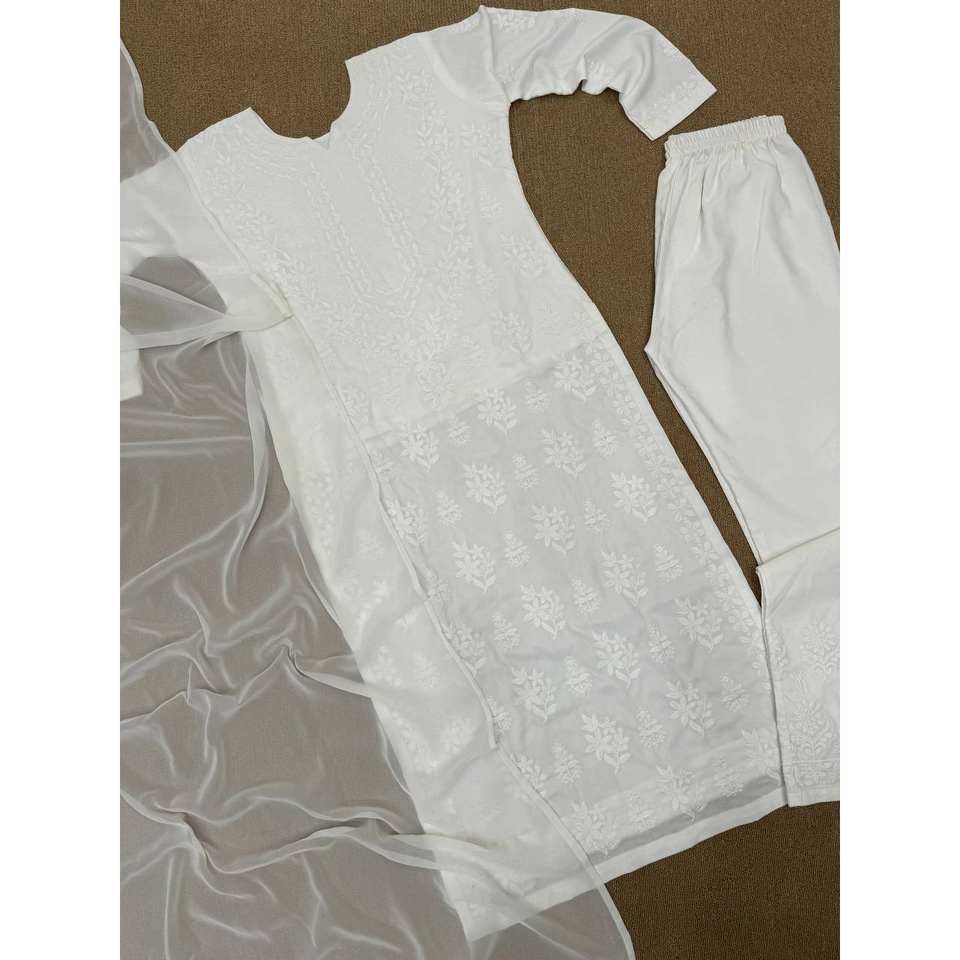 Women's Beautiful Top-Bottom and Dupatta Set with Elegant Cotton Thread Work