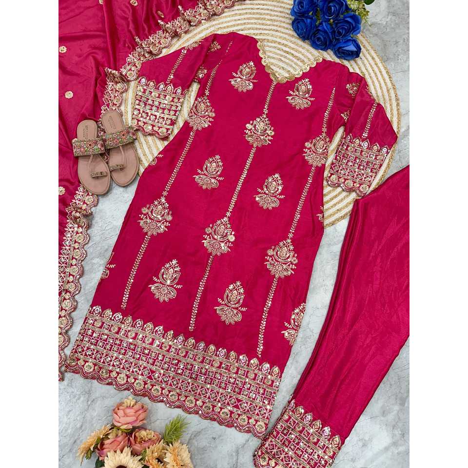 Women's Beautiful Top Pant Dupatta Set with Heavy Embroidery Work