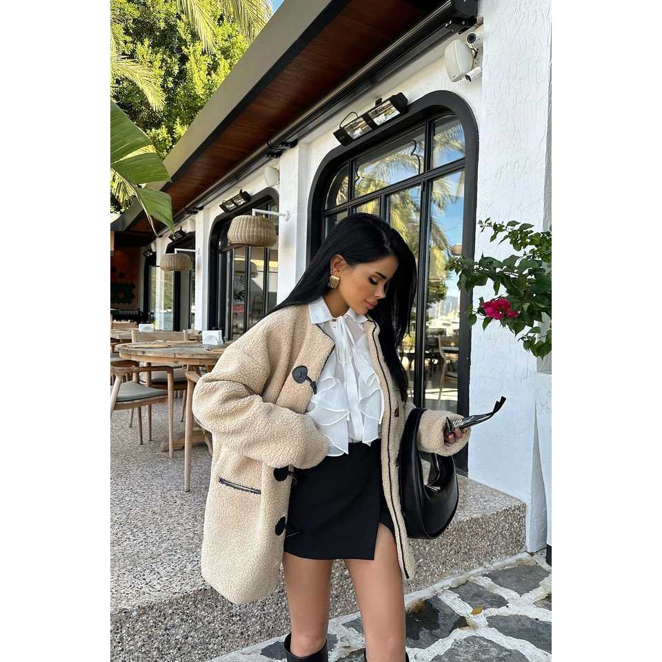 Veste boutonnée beige Serenity pour femme