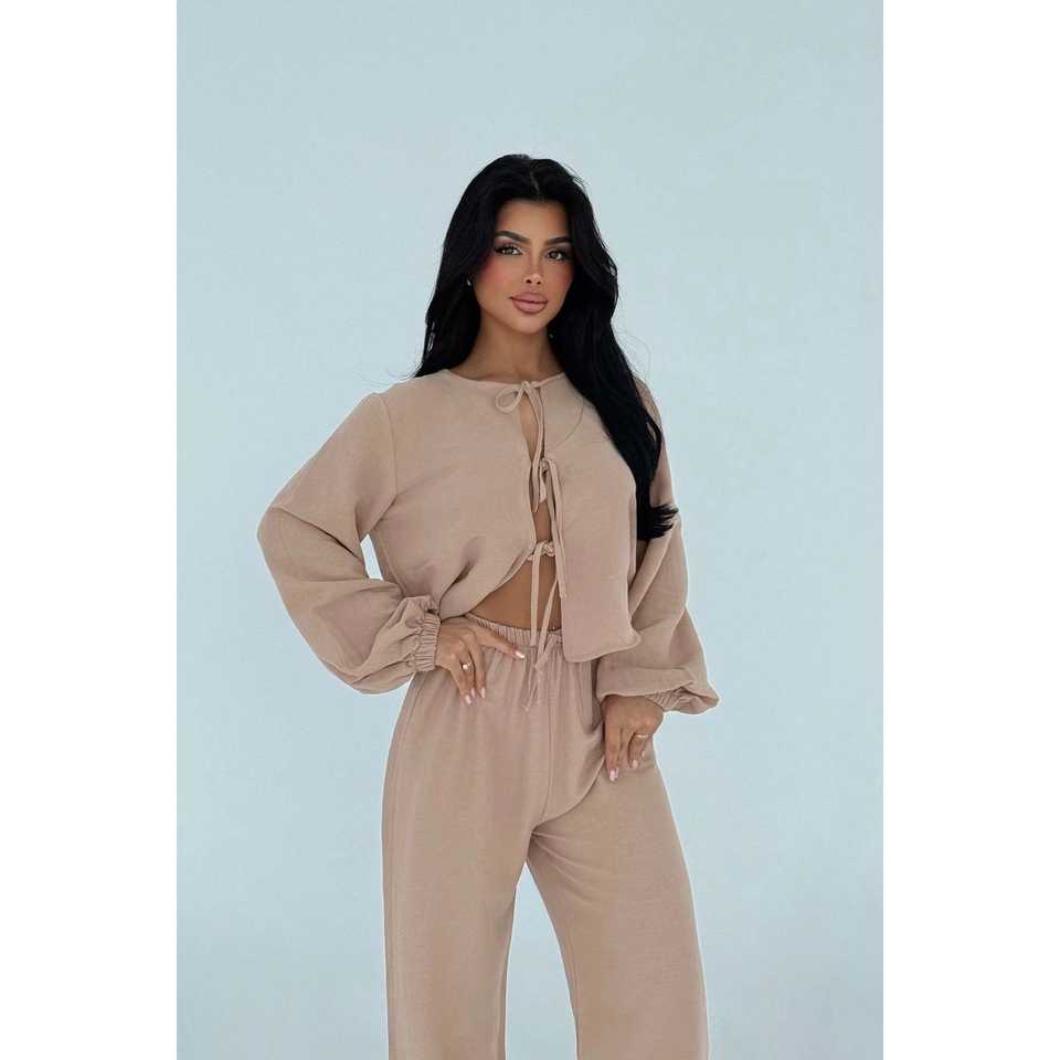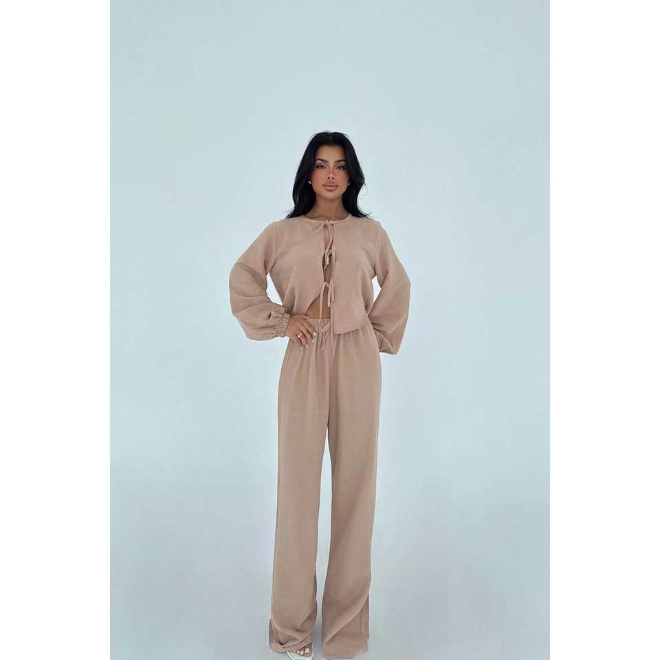 Women's Beige Tie-Up Suit Pants Elegant Set